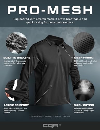 CQR Men's Polo Shirt, Long Sleeve Tactical Shirts, Outdoor UPF 50+ Pique Shirt, Dry Fit Lightweight Golf Shirts 4
