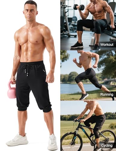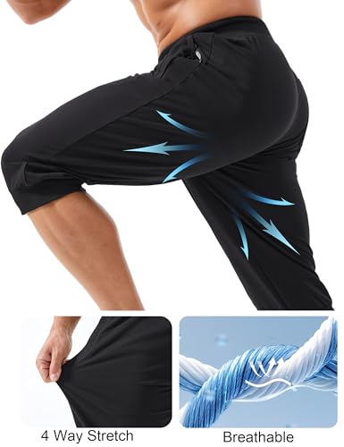 MAGCOMSEN Men's 3/4 Joggers Capri Pants with Zipper Pockets Slim Fit Training Running Workout Capri Joggers 3