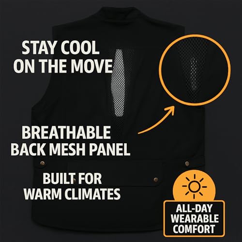 • 𝗣𝗛𝗢𝗧𝗢 𝗩𝗘𝗦𝗧: An affordable and stylish way to carry more stuff and keep your hands free on any adventure.This utility multi-pocket fishing vest for women & men is lightweight 100% cotton with 21 pockets to store passports, cameras, and more.