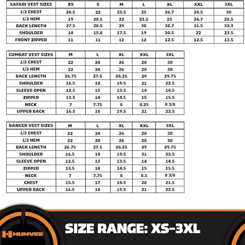 • 𝗛𝗨𝗠𝗩𝗘𝗘 𝗩𝗘𝗦𝗧: Perfect for family outings, camping, shooting, hiking, photography and anything your travels can throw at you. Big and tall mens fishing vest sized generously to create a comfortable fit when taking into account the multi- pocket storage design. Please refer to sizing chart.