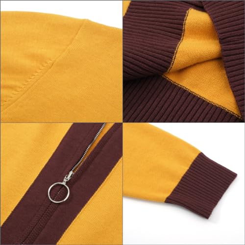 OXKNIT Men's Knit Polo Shirts Full Zip 1960s Style Retro Long Sleeve Cotton Yellow Cardigan Sweater 4