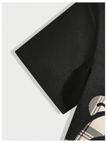 Men's Casual Outfits Short Sleeve Cartoon Bear T Shirt and Drawstring Plaid Shorts Tracksuits Set 5