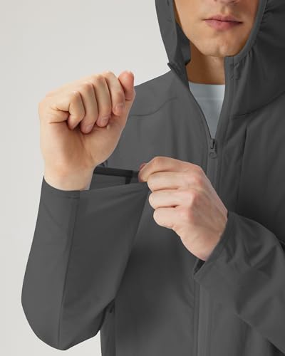 • Features: Men's lightweight jacket features a hoodie design to effectively protect your neck. Full zipper, Elastic cuffs and hem design, effective windproof, provide you better protection in the outdoor
