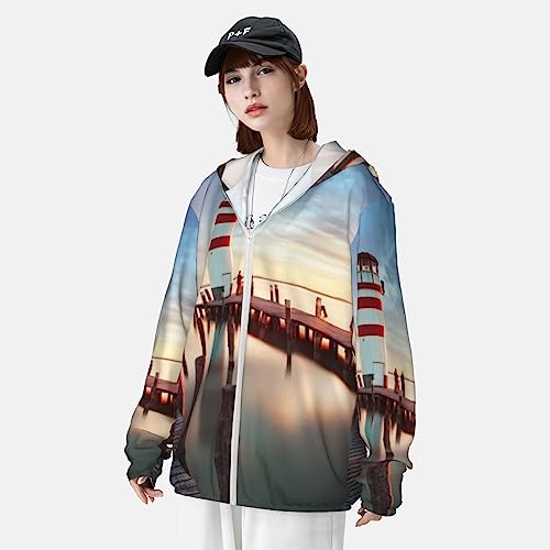 HOT ! Rainbows Lighthouse Printed Sun Protection Hoodie Sun Protection Clothing Lightweight Jackets Shirt Long Sleeve