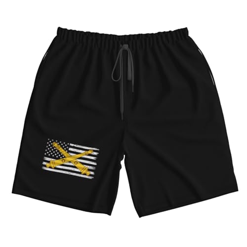 US and United States Army Field Artillery Collar Brass Mens Swim Trunks Quick Dry Swim Board Shorts Casual Beach Shorts 7
