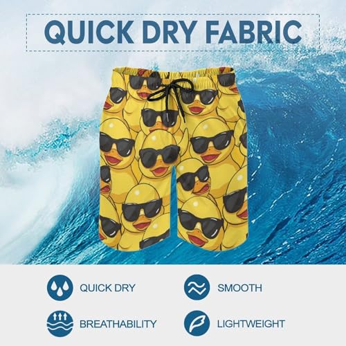 Yellow Duck with Glasses Men's Swim Trunks Quick Dry Swimwear Beach Shorts with Pocket Bathing Suits 4