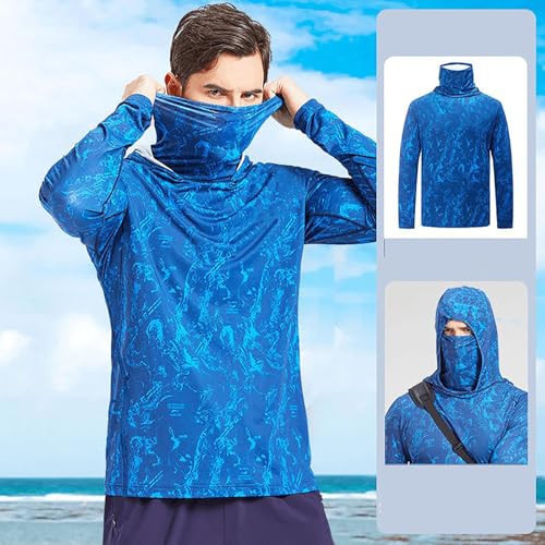 Sun Shirt with Mask UPF 50+ Men's Fishing Long Sleeve Hooded Rash Guard Hiking Running UV Protection Cooling Hoodies 5