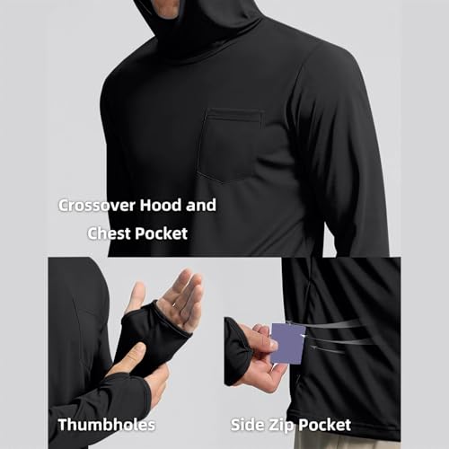 UPF 50+ Fishing Shirts for Men Long Sleeve with Hood UV Sun Protection Hoodies Outdoors Rash Guard Swim Workout Tops 6