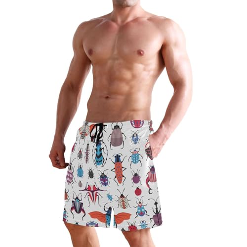 Bug Species Men's Boy's Novelty Beach Shorts Exotic Beetles Swim Trunks Summer Quick Dry Bathing Suits S 6