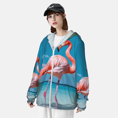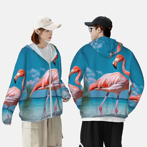 HOT ! Flamingo in Water Sun Protection Hoodie Jacket UPF 50+ Full Zip Long Sleeve Sun Shirts With Pockets Rash Guard