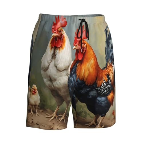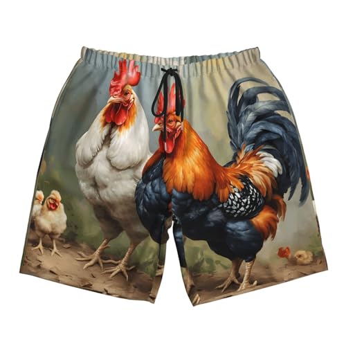 HOT ! Cute Rooster Chickens Print Men's Beach Pants Lightweight Quick-Dry Swim Pants with Mesh Lining for Men