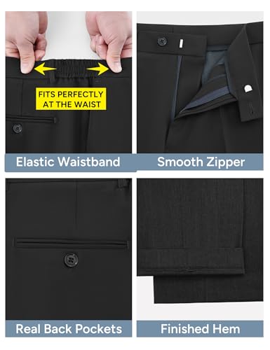 • Smart Functional Design – The fully lined jacket features dual back vents for ease of movement, while the vest includes an adjustable waist for a custom fit. Our trousers combine elastic side adjusters with a reinforced gusset and durable zipper for both comfort and longevity. The included tie and bow tie feature pre-tied designs with zipper adjustments, making them effortlessly stylish for any formal or semi-formal occasion - no tying skills required!