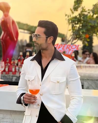 • 【Vintage Gold Button Suits Design】Unlike solid or regular suits, 5 gold-button single breasted suits create a vertical stretch, elongating proportions for a slimmer, taller look. Pin striped jacket with striped pants easily crafts an "elite vibe," making the Safari mens suit regular fit stand out from dull alternatives.