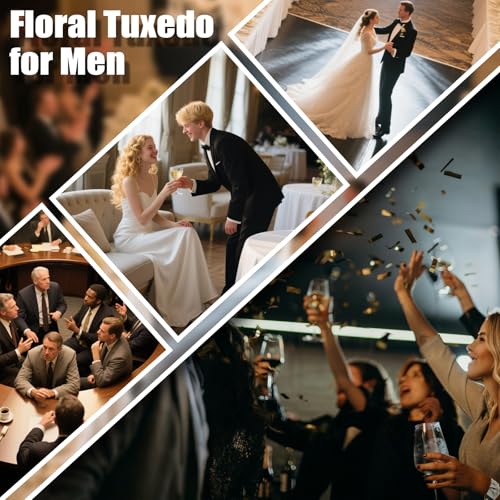 More information about KUDORO Mens Floral Suit Jacket Black Dress Tuxedo Slim Fit Two Button Sports Coats Blazer for Dinner Party Prom X-Large