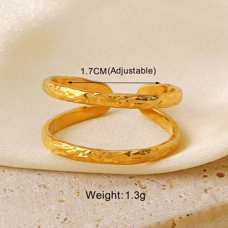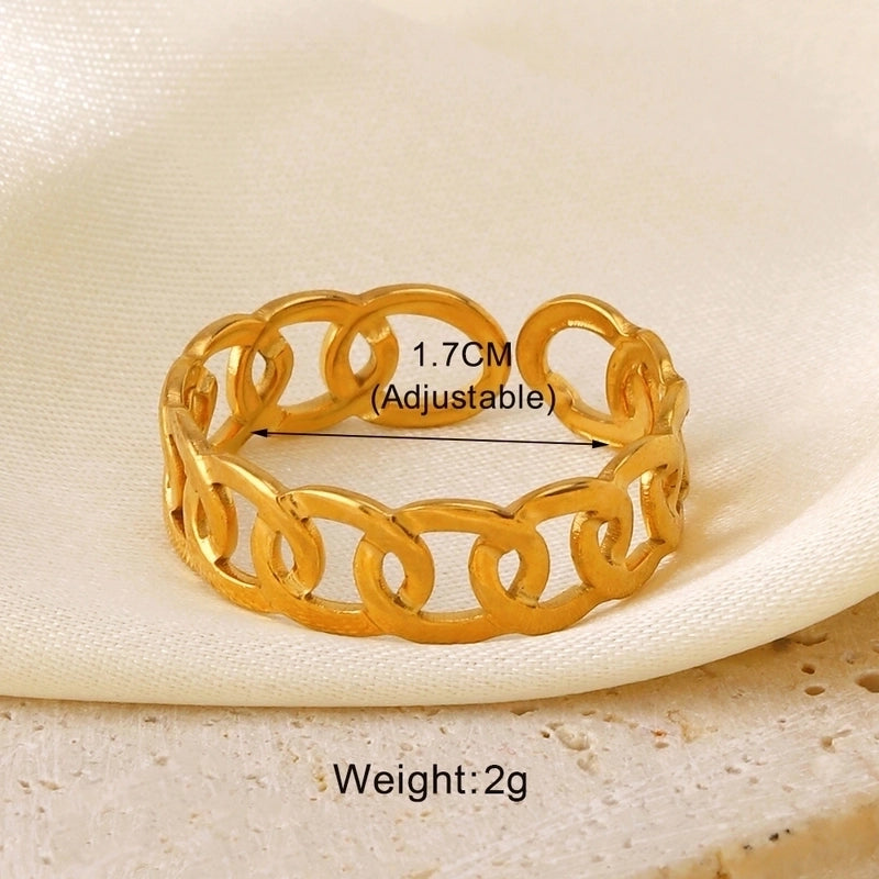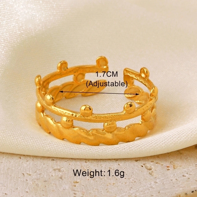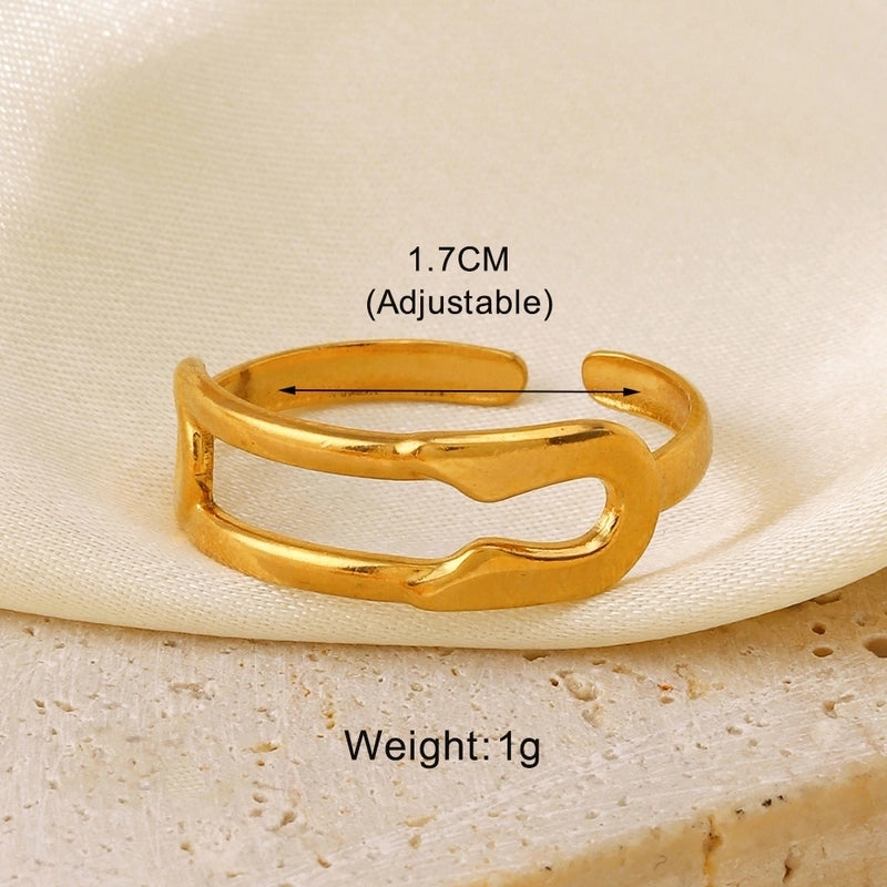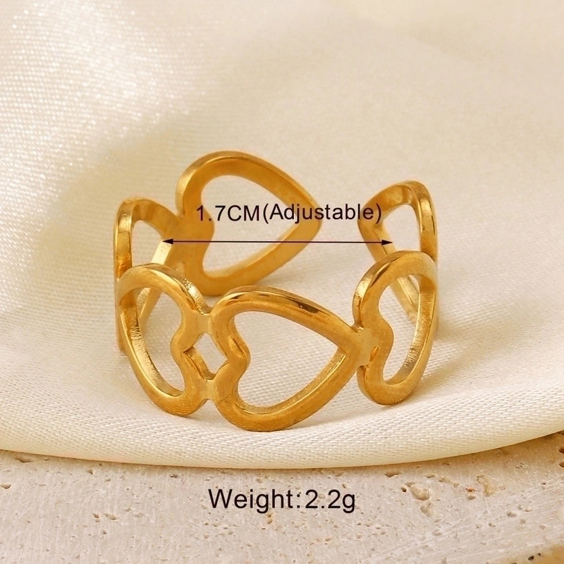 304 Stainless Steel 18K Gold Plated Minimalist Hollow Out Leaves Heart Shape Lines 304 Stainless Steel Open Rings 1