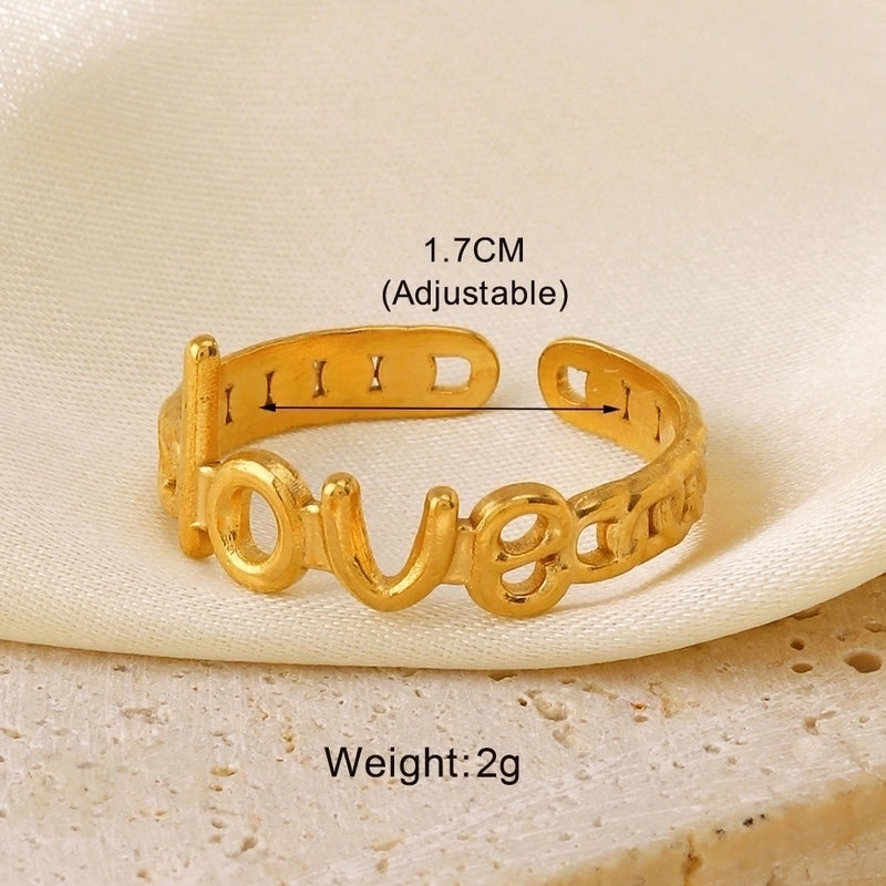 HOT ! 304 Stainless Steel 18K Gold Plated Minimalist Hollow Out Leaves Heart Shape Lines 304 Stainless Steel Open Rings