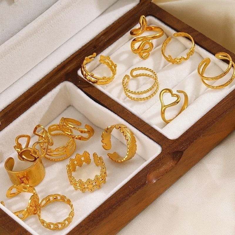 304 Stainless Steel 18K Gold Plated Minimalist Hollow Out Leaves Heart Shape Lines 304 Stainless Steel Open Rings 10