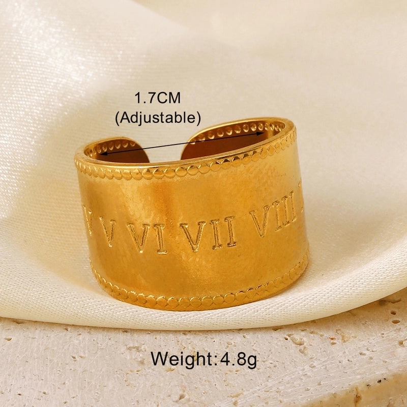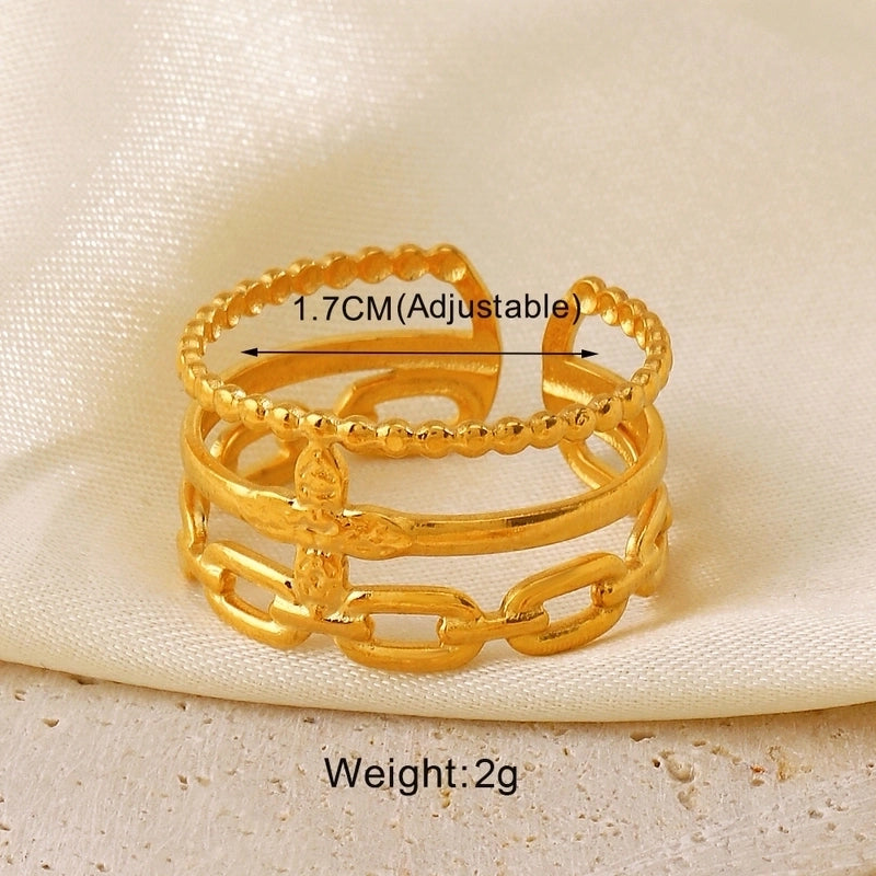 304 Stainless Steel 18K Gold Plated Minimalist Hollow Out Leaves Heart Shape Lines 304 Stainless Steel Open Rings 14