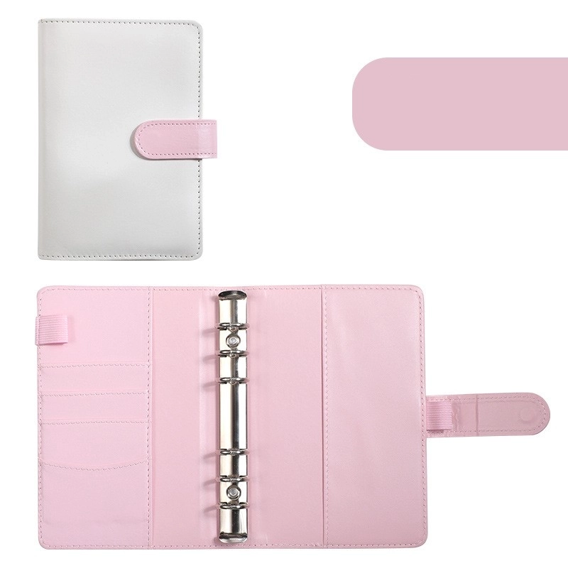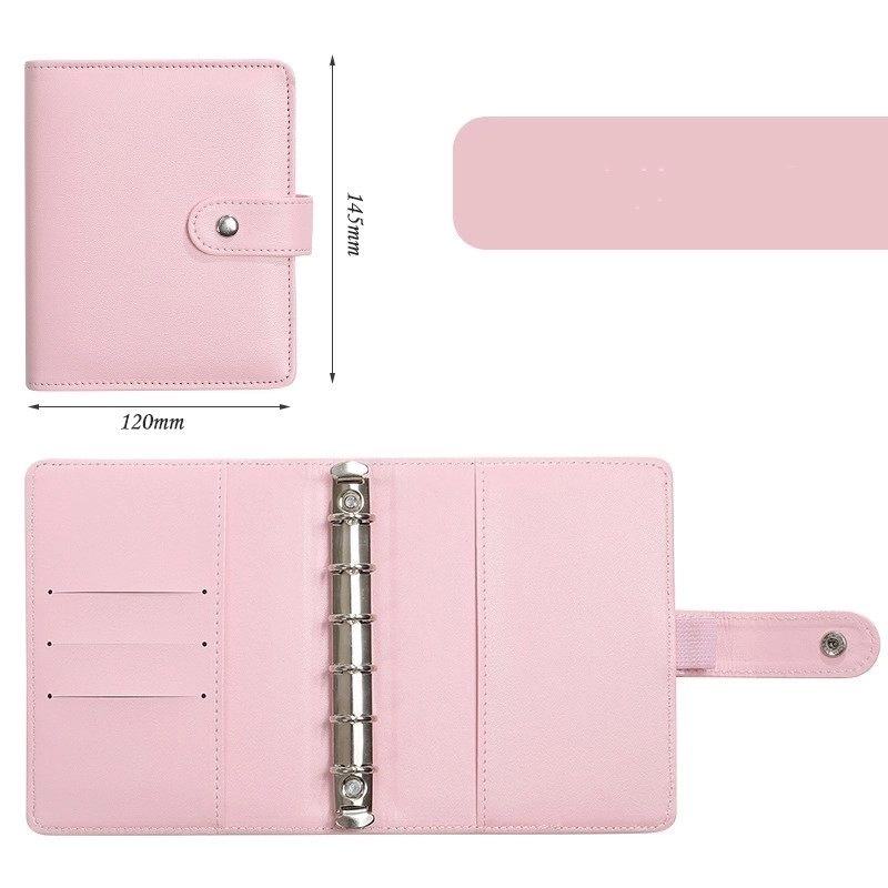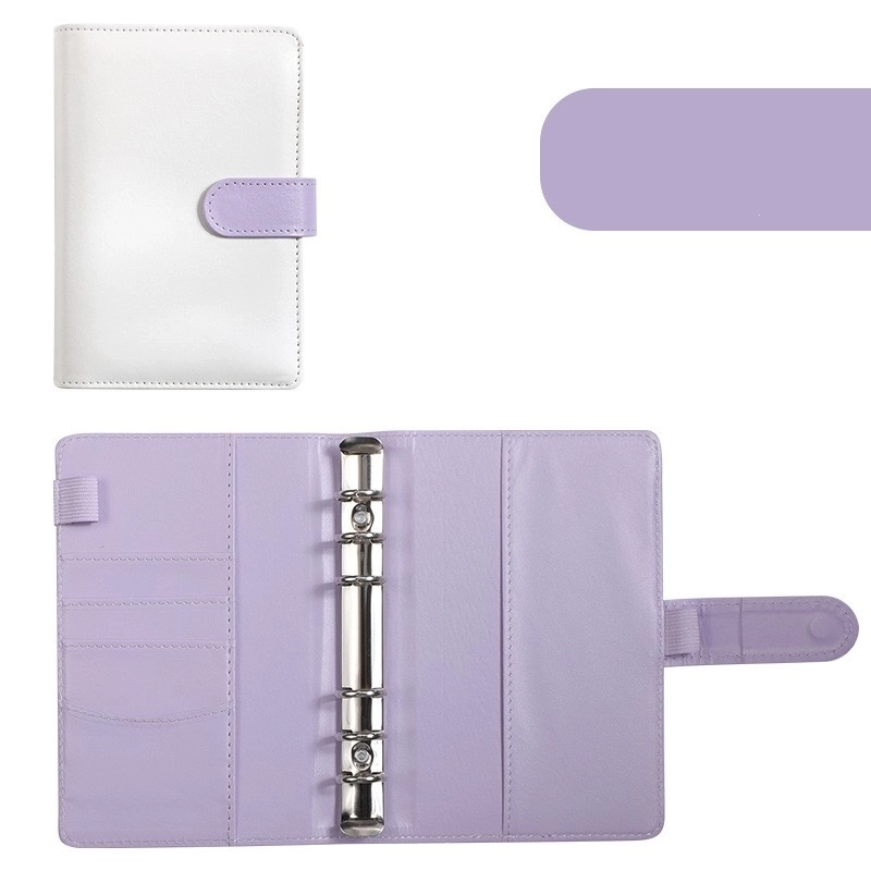 A6 Macaron Leather Notebook Loose-leaf Binder Refillable With 12 Loose-leaf Zipper Bag Bill Change Storage Book 24