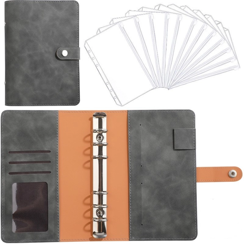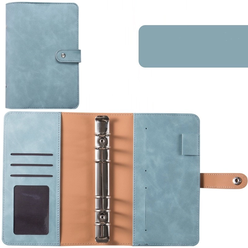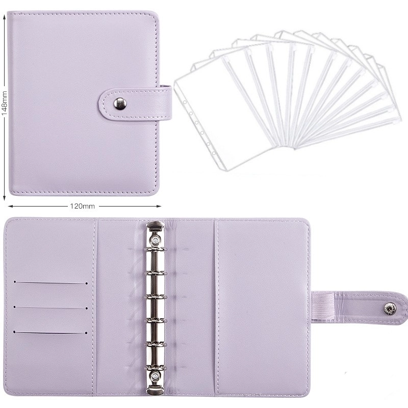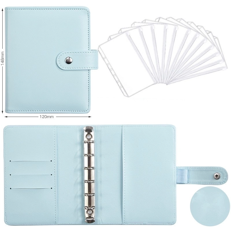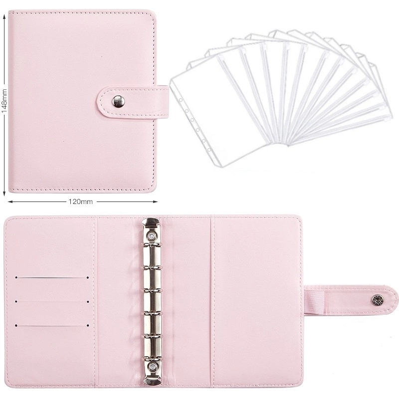 A6 Macaron Leather Notebook Loose-leaf Binder Refillable With 12 Loose-leaf Zipper Bag Bill Change Storage Book 12