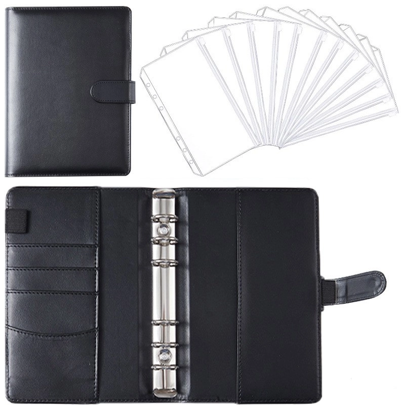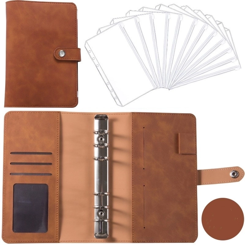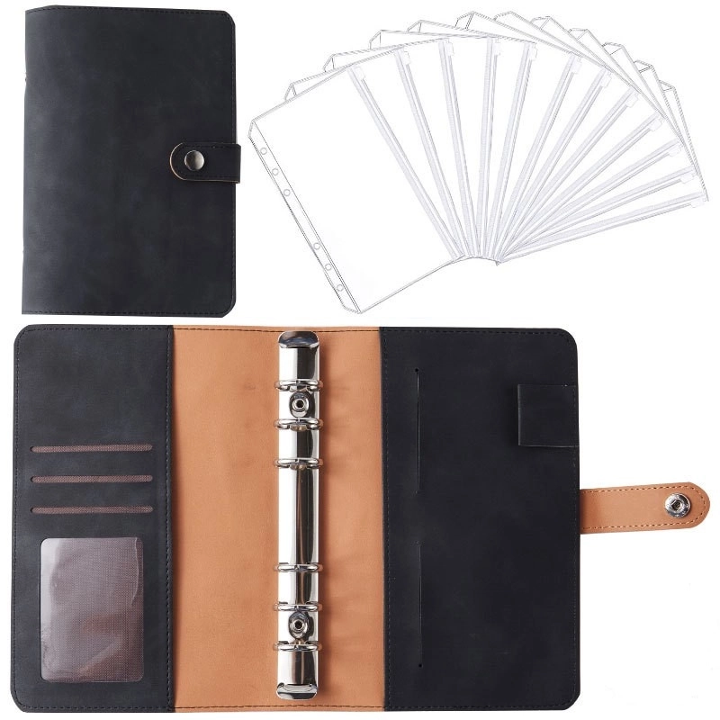 HOT ! A6 Macaron Leather Notebook Loose-leaf Binder Refillable With 12 Loose-leaf Zipper Bag Bill Change Storage Book