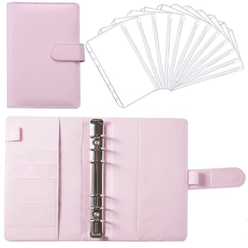 A6 Macaron Leather Notebook Loose-leaf Binder Refillable With 12 Loose-leaf Zipper Bag Bill Change Storage Book 6