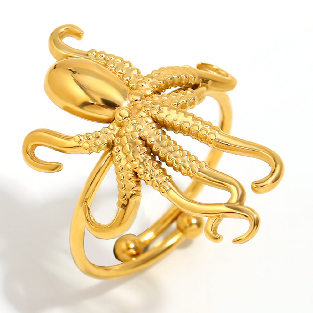 Exaggerated Niche Personality Design Ocean Series Hand Jewelry Stainless Steel Plated 18K Gold Octopus Open Ring 5