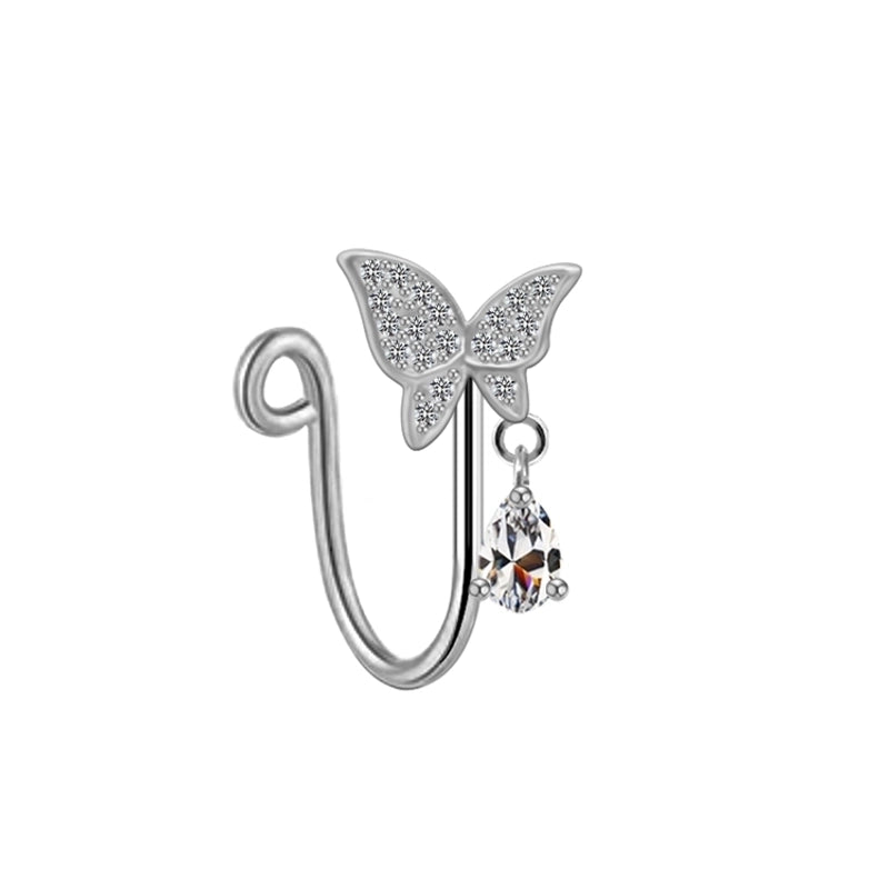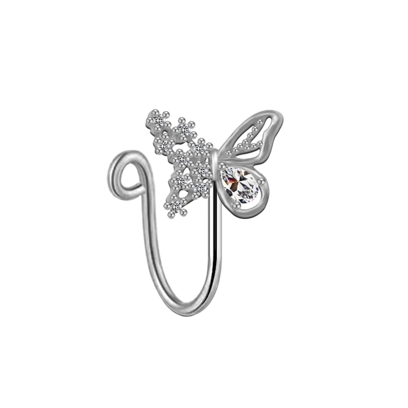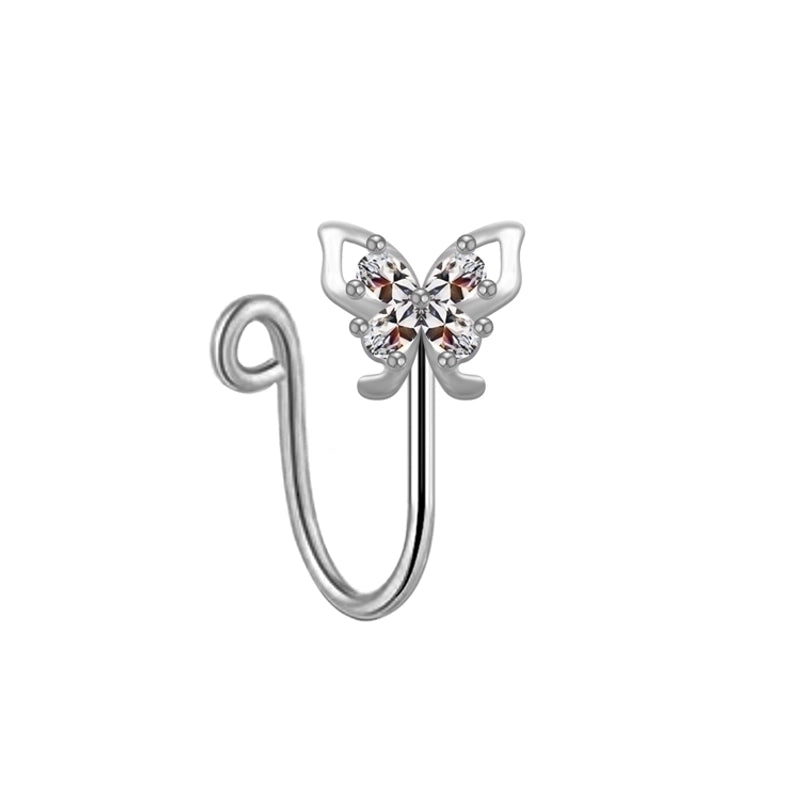 Elegant Cute Vacation Wings Butterfly Stainless Steel Copper White Gold Plated Rhinestones Zircon Nose Ring Nose Studs In Bulk 11