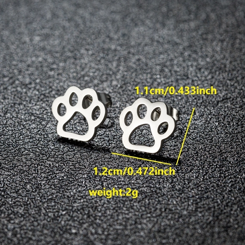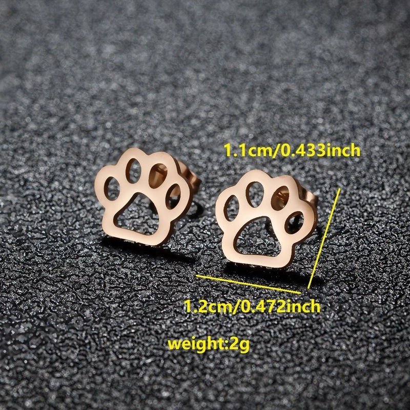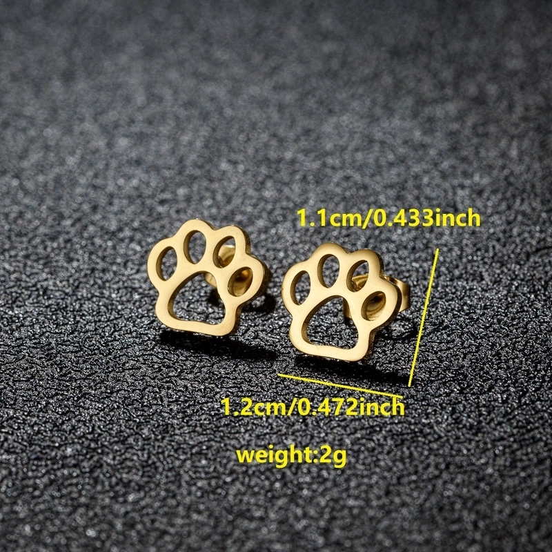 1 Pair Cartoon Style Sweet Artistic Cactus Paw Print Cat 304 Stainless Steel 18K Gold Plated Ear Studs 29