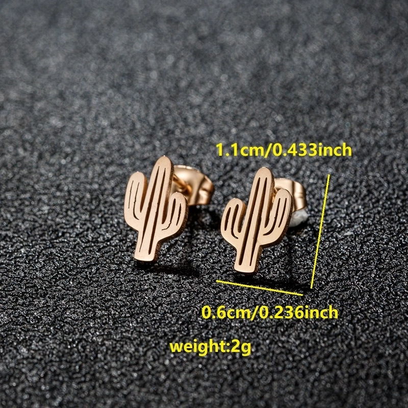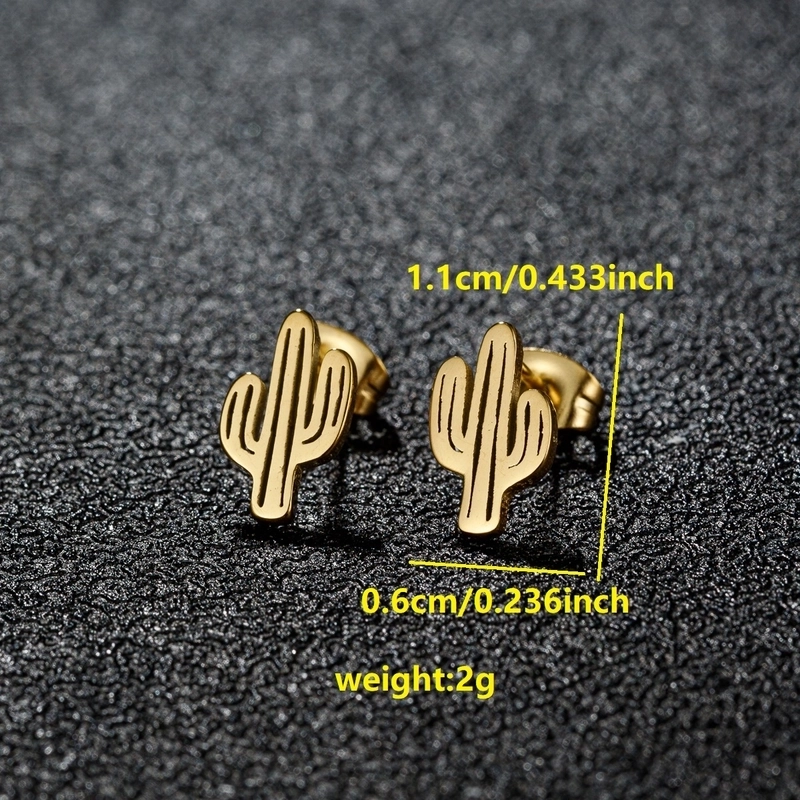 1 Pair Cartoon Style Sweet Artistic Cactus Paw Print Cat 304 Stainless Steel 18K Gold Plated Ear Studs 31
