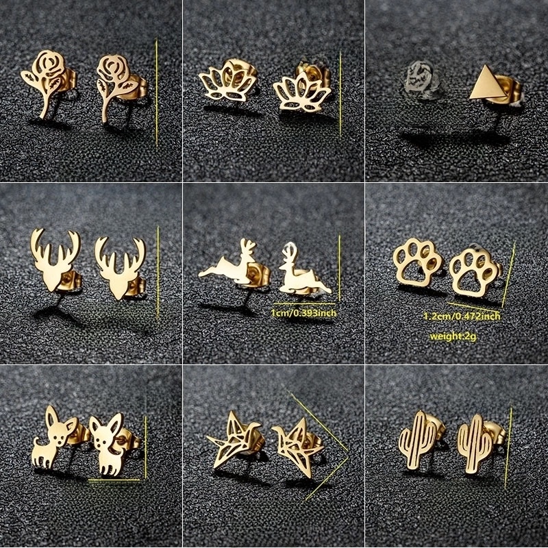 More information about 1 Pair Cartoon Style Sweet Artistic Cactus Paw Print Cat 304 Stainless Steel 18K Gold Plated Ear Studs