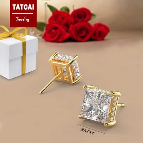18K White Gold Plated Sterling Silver Princess Cut Square Cubic Zirconia Stud Earrings for Women Men Clear CZ Diamond Stud Earrings 6