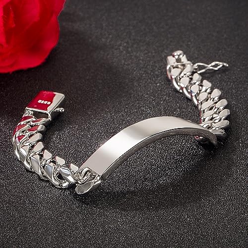 H&Beautimer 925 Sterling Silver Bracelet 10/12MM Cuban Chain Bracelet Fine Jewelry Men Teen Sterling Silver Brand Chain Bracelet 7,7.5,8,8.5,9,9.5,10'' Birthday Gift 4