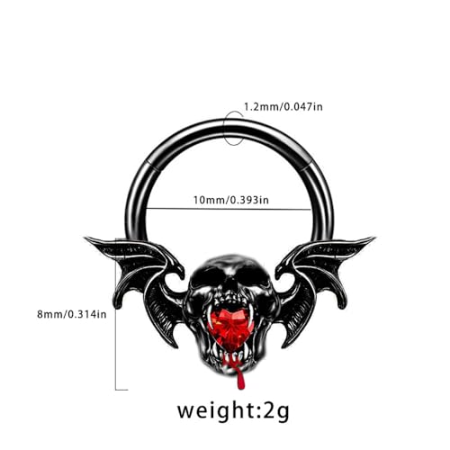 HOT ! 16G Black Devil Nose Septum Ring for Women Men Stainless Steel Skull Bat Septum Jewelry 10mm Hoop Nose Rings Cartilage Earrings Halloween Nose Piercing Jewelry