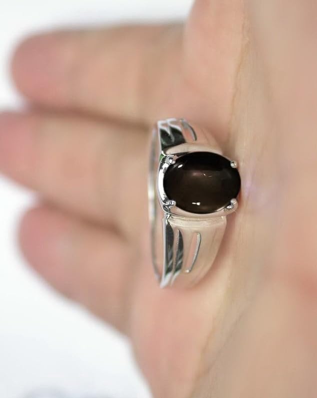 Black Star Sapphire Gemstone Ring In 925 Sterling Silver For Men's Rings Classic Design 7X9MM Oval Cut Ring | Sizes 4 to 16 US 4