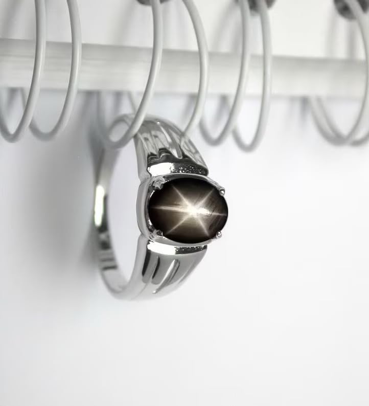 • Gemstone: 7x9mm Black Star Sapphire with a unique star-like effect