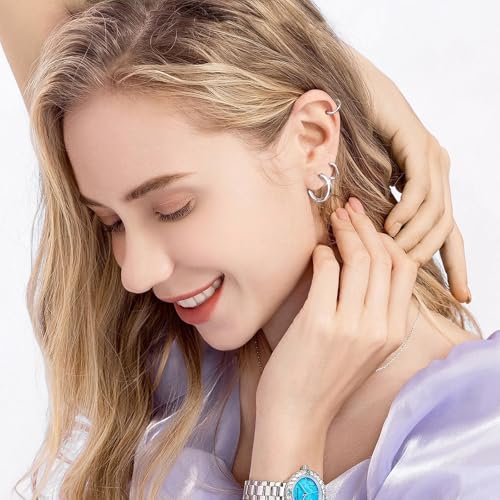 • Womens Mens Hypoallergenic Silver Hoops Earrings Set: Easy opening and closing hoop earring buckle design shiny silver hoop earrings are perfect for many occasions to wear, daily life, various holiday parties, etc
