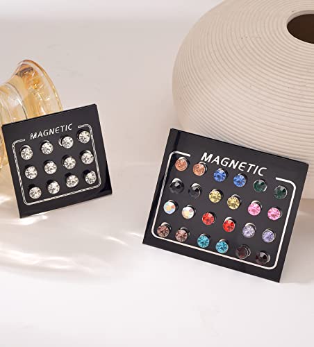 18 Pairs Magnetic stud Earrings Colors CZ Earrings Set Fake Earring Jewelry Clip on No Piercing Earrings Studs for Women Men 4MM 6MM 6