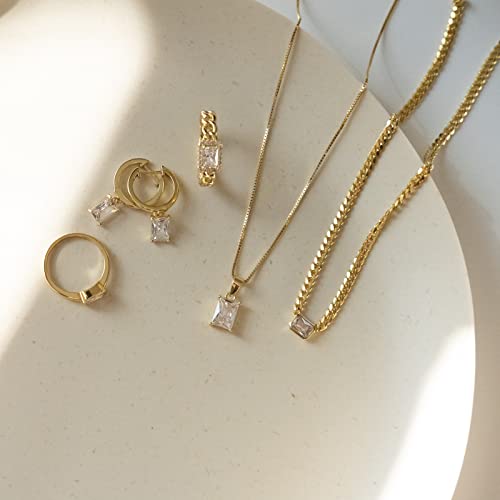 More information about espere Baguette CZ Necklace | Emerald Cut Pendant Cuban Link Chain Choker 14'' with 2'' Extender