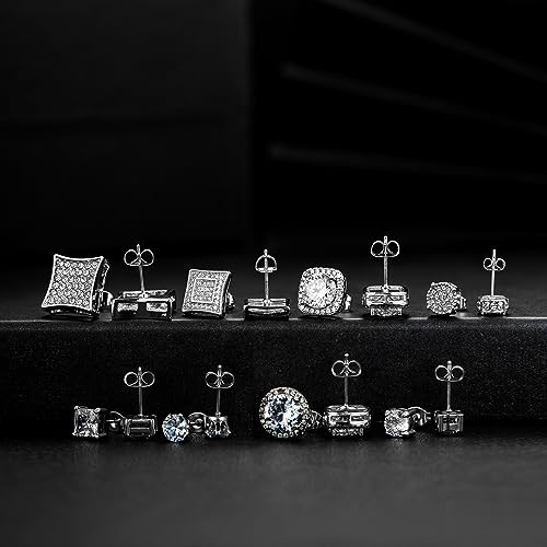 • MEN'S EARRINGS: The cubic zirconia studs earrings are simply designed, different shapes and sizes, such as square earrings, round earrings, lightweight and comfortable to wearing. Suitable for both men and women. Stud earring set is fashion and exquisite, which can win more compliments. Different style men stud earrings in one order, earrings with elegant square and circle CZ, will go well with any style for any occasion