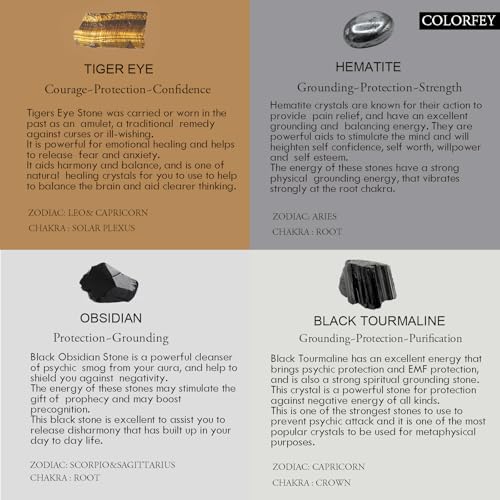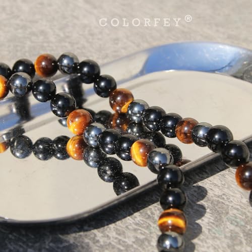More information about Triple Protection Crystal Necklace for Men, COLORFEY Healing Crystal Tourmaline Necklace Real Tiger Eye Obsidian Hematite Beads Necklace for Men, Premium Mens Beaded Jewelry Gifts for Stress Relief