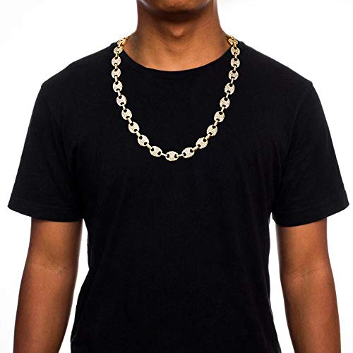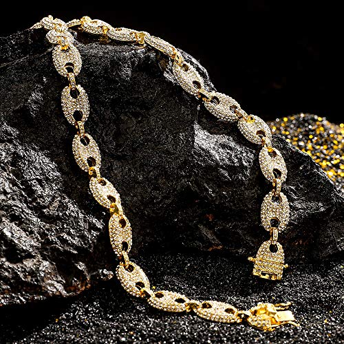 HOT ! Gold Mariner Cuban Link Chain for Men, Silver Iced Out Diamond Coffee-bean Cuban Link Chain Necklaces,Hip Hop Rapper Jewelry Chains 16-30 Inches