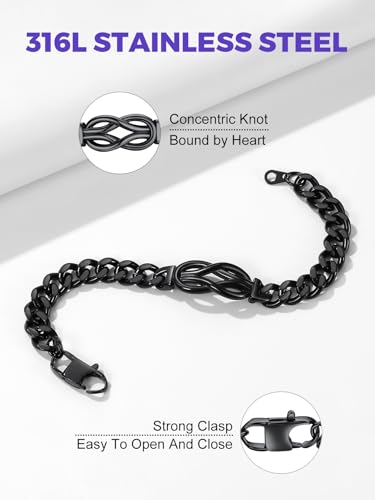 • Gift Card To My Love: Cool bracelet jewelry gift for men, Crafted with a timeless stainless steel infinity knot design, this meaningful bracelet symbolizes an unbreakable bond of love and commitment. Each bracelet comes elegantly packaged in a gift box and includes a heartfelt wish card, deeply express your love for him