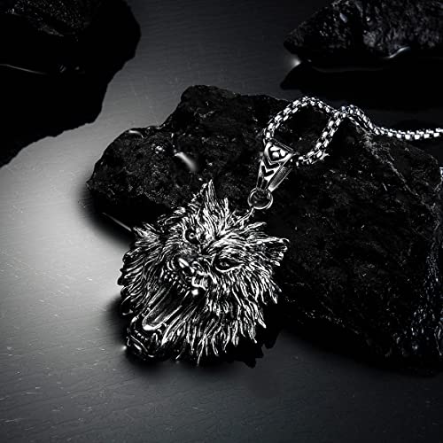 FUTIMELY Men's Stainless Steel Viking Wolf Necklace - Vintage Gothic Tribal Pendant - Punk Style Domineering Fierce Amulet Wolf Head Jewelry 3