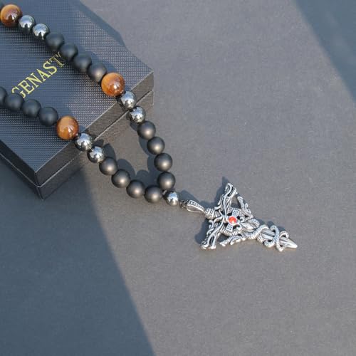 • Unique Design and Exquisite Craftsmanship:This men's crystal necklace features a cross pendant at its center, with a pendant size of 2.5 inches (6.5 cm), symbolizing holiness and strength. It is composed of 10mm hematite, 10mm black onyx, and 12mm tiger's eye beads, perfectly blending the energy and aesthetics of natural gemstones to showcase a unique personality and profound spiritual significance.