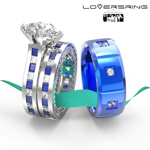 More information about Wedding Ring Sets His And Hers Promise Ring Wedding Ring Sets His And Hers Couples Women 925 Sterling Silver Blue Mariquesa Moissanite Man titanium Wedding Band