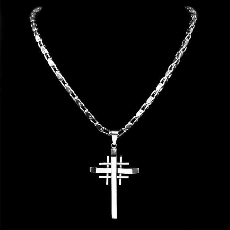 Punk Crusaders Cross Necklace Pendant for Men Women Stainless Steel Prayer cruz (Metal Color: 55cm DC SR) 5