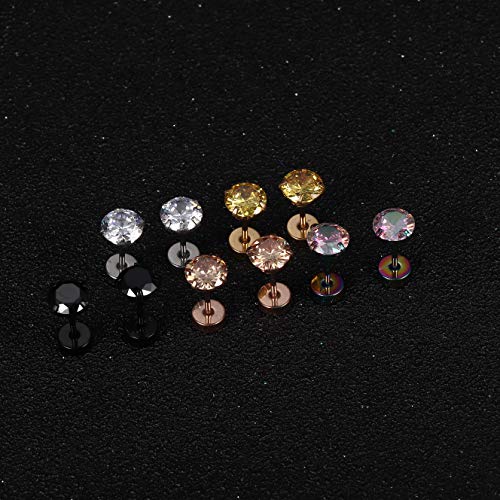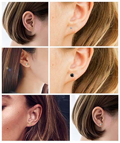 More information about BESTEEL 20G Hypoallergenic Flat Back Earrings for Women Men Surgical Steel Stud Earrings Tiny Cubic Zirconia Cartilage Tragus Earrings Screw Back Earrings Set for Sensitive Ears 2/3/4/5/6MM