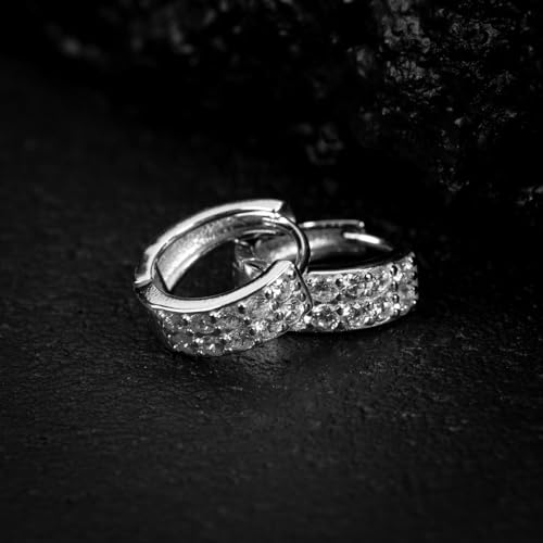 Two Row Iced Shiny 5A Cz Trendy Classic White Gold Plated 925 Sterling Silver Unisex Ice Out 12mm Hoops Hypoallergenic Huggie Hoop Earrings For Men Women Jewelry 7