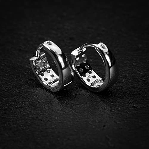 More information about Two Row Iced Shiny 5A Cz Trendy Classic White Gold Plated 925 Sterling Silver Unisex Ice Out 12mm Hoops Hypoallergenic Huggie Hoop Earrings For Men Women Jewelry